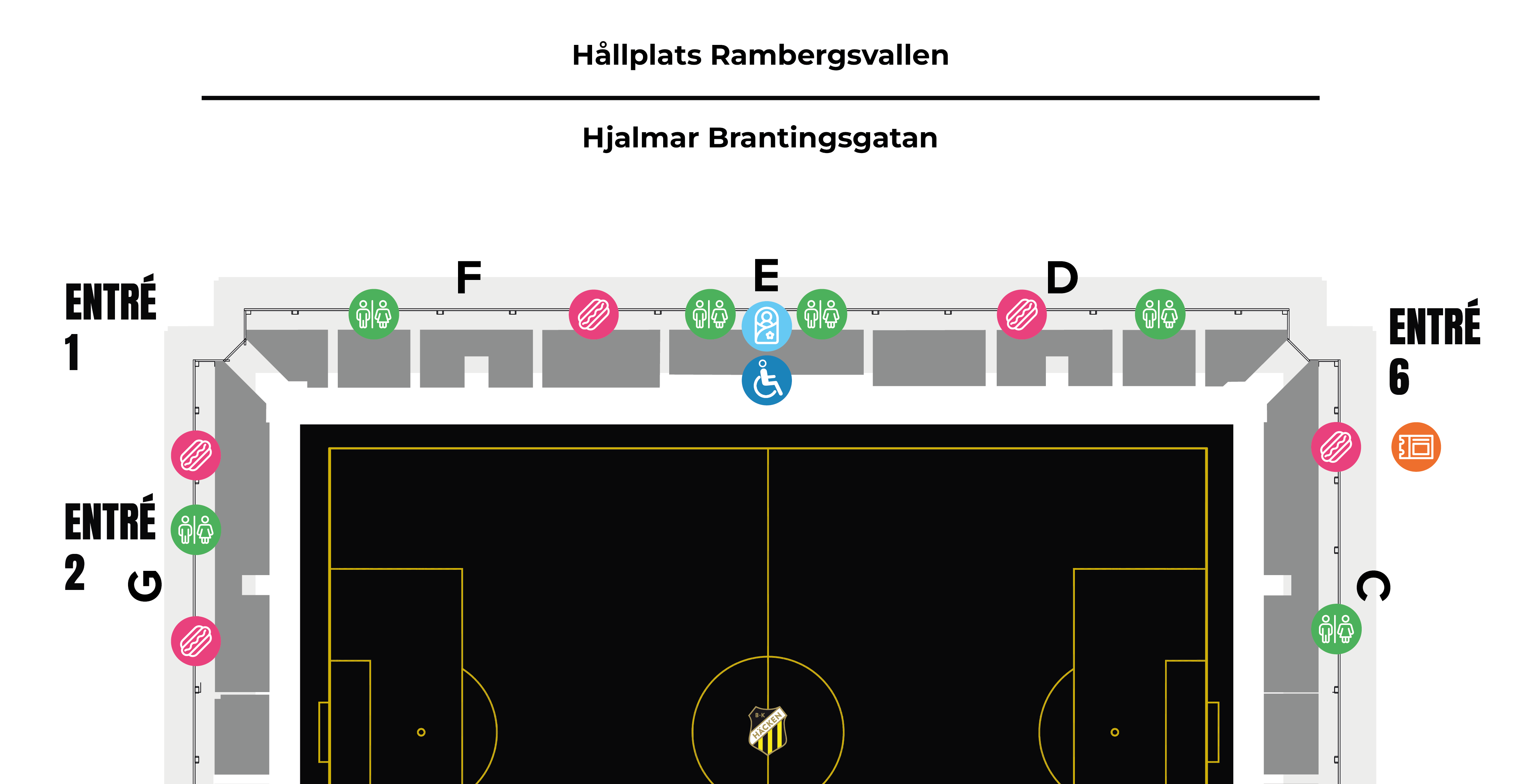 * Kortsidan innefattar sektionerna G (hemmaklack) samt Familjeläktaren (H)